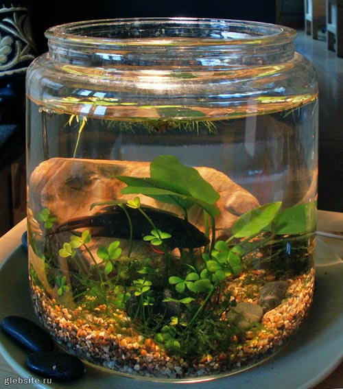 Любому порядочному чОрному магу положено иметь сопровождающее его животное — злобное, неприрученное, и, желательно, тоже чОрное. А так как к чОрной магии я имею непосредственное отношение, то и у меня появился демонический спутник. Я завел мини-аквариум. Так, в монитор не хихикаем!