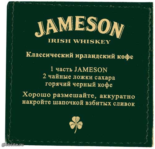 Но самое интересное оказалось на обороте. Вчитываемся в рецепт «Кофе по-ирландски», изложенный воистину просветленным человеком-копирайтером: