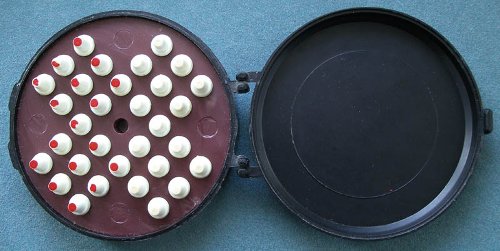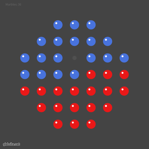 На всякий случай, напомню правила исходной игры. В начале поле заполнено шариками с единственной свободной клеткой где-то посередине поля. Задача игрока — снять все шарики, кроме одного. Шарик можно перемещать единственным образом: перепрыгивая через соседние шарики. Шарик,через который перепрыгнули, снимается с поля. «Прыгать» можно по вертикали и горизонтали, но не по диагонали. Вспомнили?