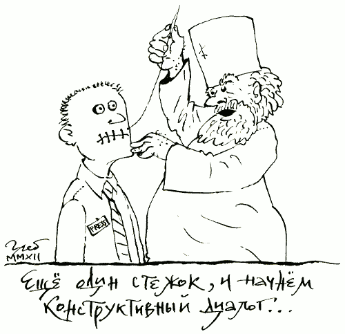 А эта картинка навеяна заявлениями церкви о готовности к диалогу, правда, с некоторыми оговорками – Невзорова не приглашать, в святости не сомневаться, острых вопросов не задавать.