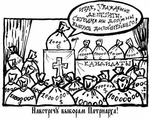 «…отмечалось, что среди делегатов на Поместный собор для выборов патриарха значительное число составляют чиновники и бизнесмены» (тут)
