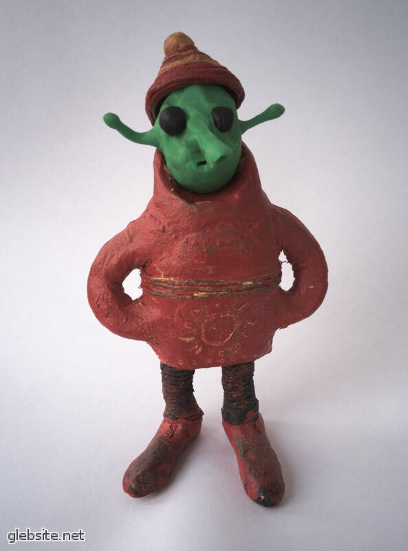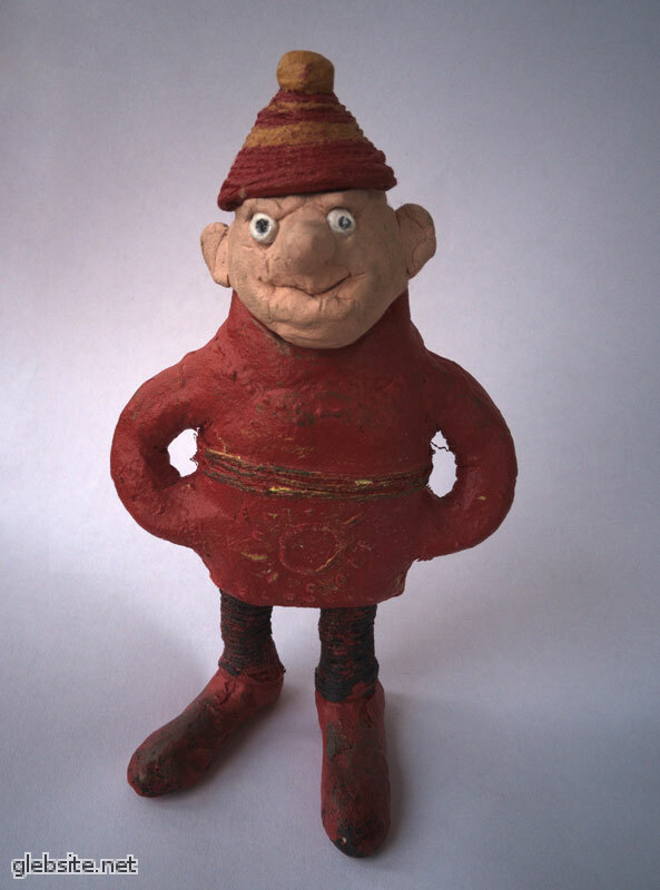 На самом деле, идея старая и странная. Это человечек, тело (и шапочка) которого сделаны из папье-маше, а голова — из пластилина или клячки... что в голову придет. Можно менять ему настроение под свое настроение, или даже сменить расу, следуя последним политическим тенденциям.
