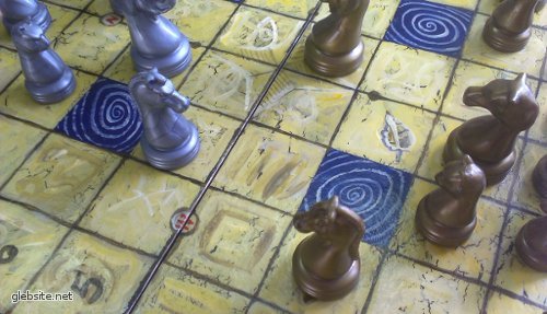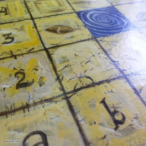 Поэтому мне хотелось, чтобы доска была немного в стиле арт-брют. Так что я взял ненужную шахматную доску, проморил ее, загрунтовал и…