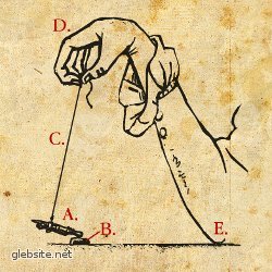 В углубление артикулюса ставится «локоть» манулы (A). К самой мануле крепится нитка (С), удерживаемая оператором (D). Локоть оператора должен опираться на стол, а рука свободно висеть, удерживая нитку таким образом, чтобы манула могла свободно вращаться.