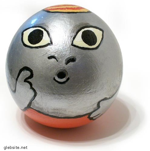Неваляшка предостерегающий. При качании звенит приятным звоном. Происхождения, судя по всему, инопланетного. Деревянная основа, акриловые краски.