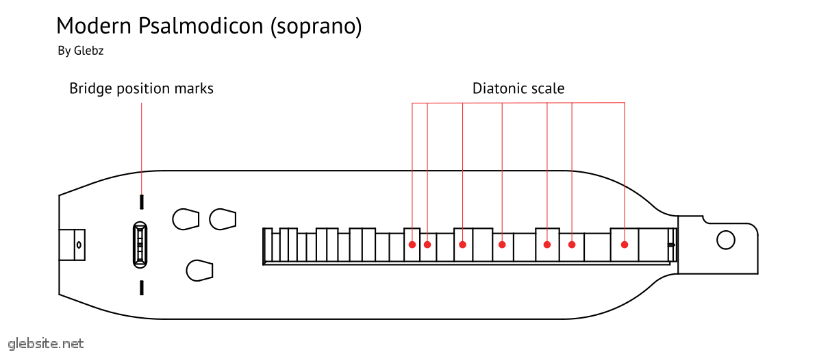 И, конечно, я сделал свой псалмодикон. Конструкция немного улучшена, теперь форма накладки грифа подсказывает, где искать ноты хроматической гаммы. Да, и это ноу-хау.