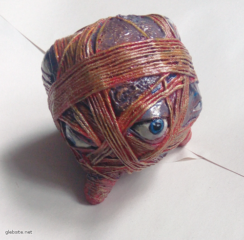 Изготовлено из папье-маше, пряжи, покрашено акрилом.