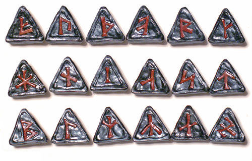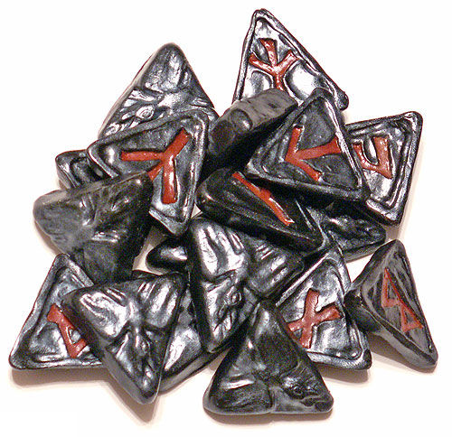 Чтобы руны не были слишком «пластиковыми», сами знаки выполнены натуральным гематитом (пигментом), хотя сам я думаю, что не в материале счастье — древние северяне делали руны из дерева, потому что дерево было самым доступным материалом.