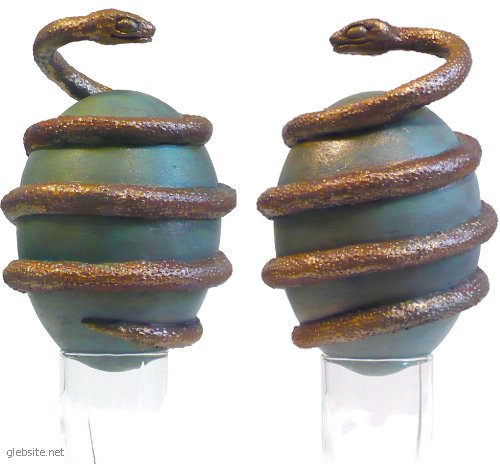 Сначала мне просто захотелось, чтобы у меня на столе стоял этот гностический символ. Потом оказалось, что для этого надо освоить новые материалы, в общем работа затянулась почти на год. В результате «изваяние» сделано из дерева (деревянного яйца) и эпоксидной смолы, окрашено акрилом. Общая высота около 14 см.