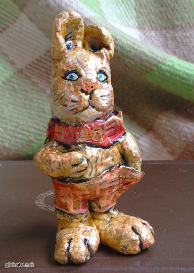 Слепился и раскрасился вот такой серьезный зайчик с фигой в кармане.