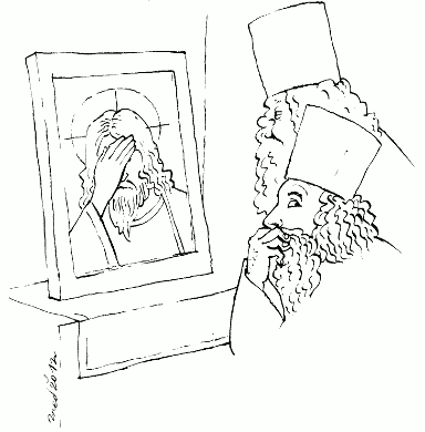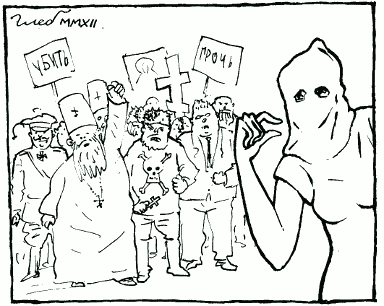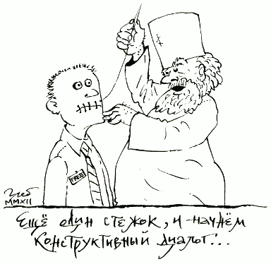 А эта картинка навеяна заявлениями церкви о готовности к диалогу, правда, с некоторыми оговорками – Невзорова не приглашать, в святости не сомневаться, острых вопросов не задавать.