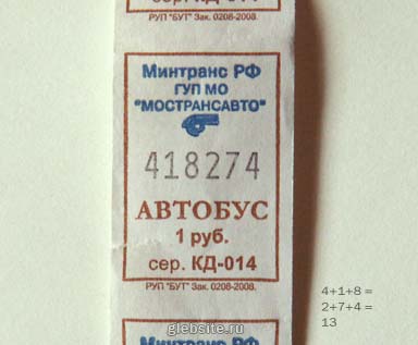 Совершенно случайно стал обладателем вот такого билетика. Счастливый билет, с суммой 13. Концептуально прекрасно! Может, продать с аукциона?