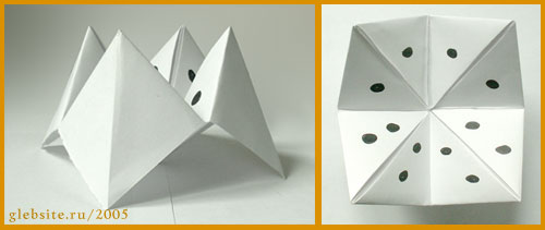 Вспоминали тут с коллегой разные детские поделки из бумаги, в том числе — бумажные гадалки…